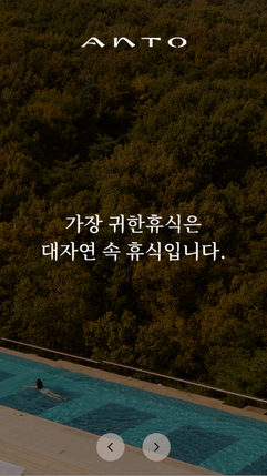 한화 리조트의 프리미엄 멤버십 브랜드 ANTO는 단순한 정보 전달을 넘어, 고객의 손끝에서 한 장씩 감상되는 전용 모바일 카탈로그를 구축했습니다. 하이엔드 마케팅의 정점을 보여주는 ANTO의 UX 설계 핵심은 다음과 같습니다.